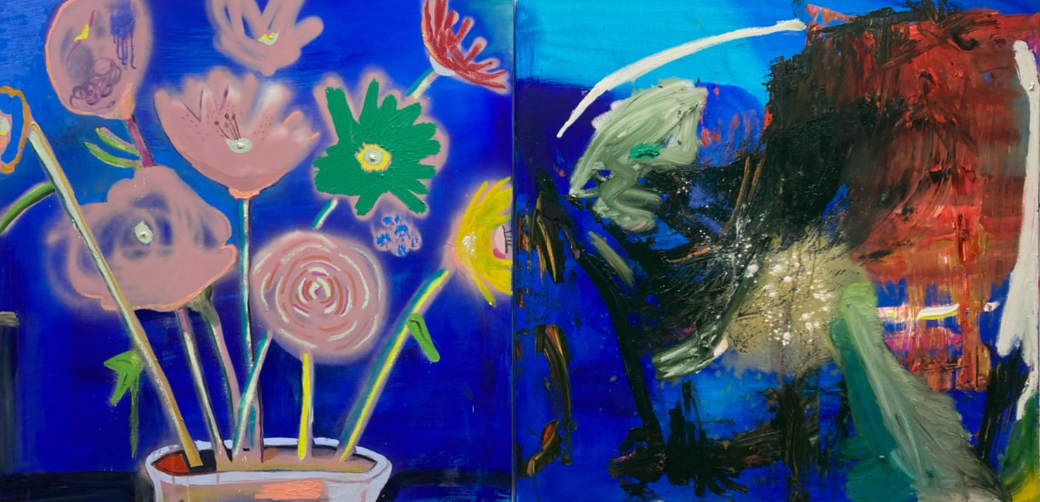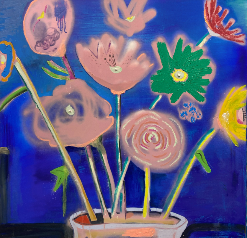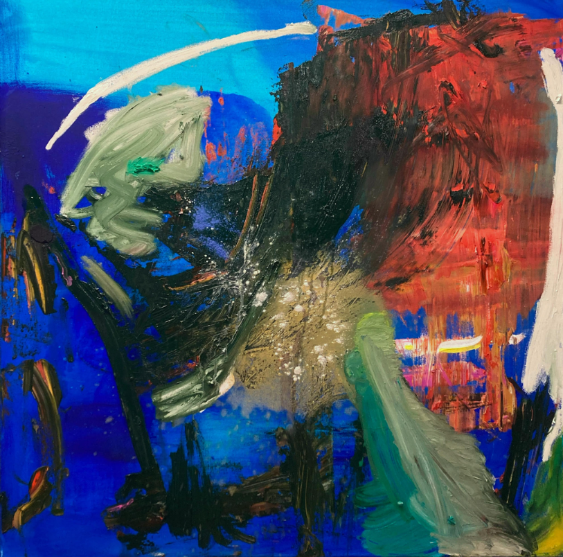 Oil, oil stick, pearlescent pigment, acrylic, charcoal on canvas