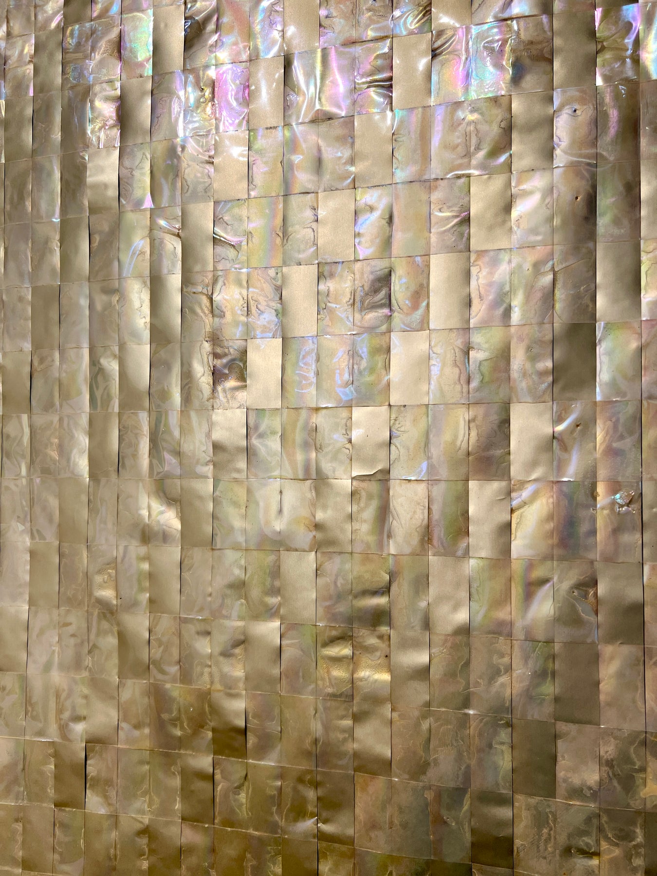 Mylar, plastic, photoscreen vinyl, veiling, threads